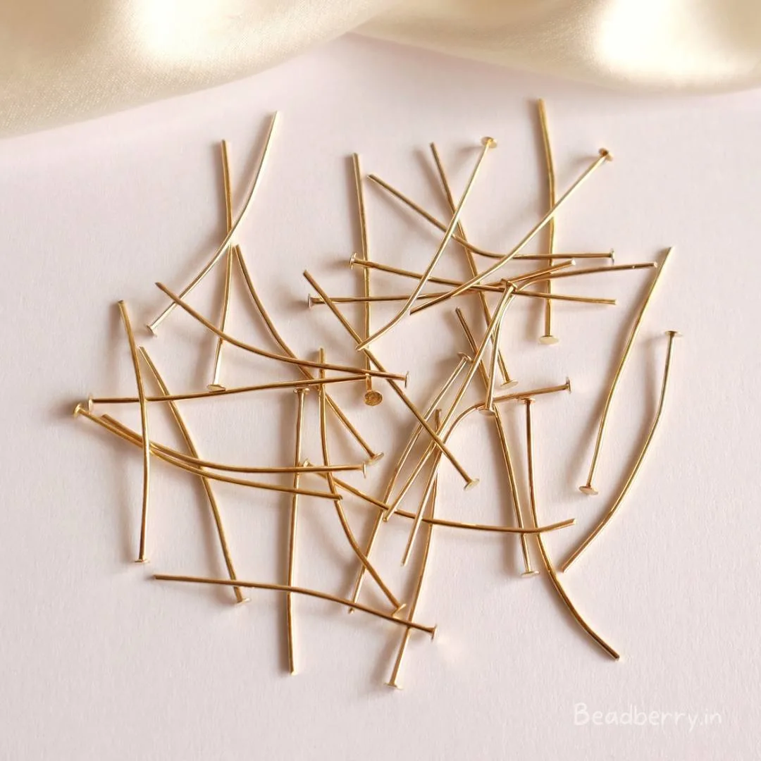 Gold-Plated Head Pins For Jewelry Making | 32mm | 50Pcs